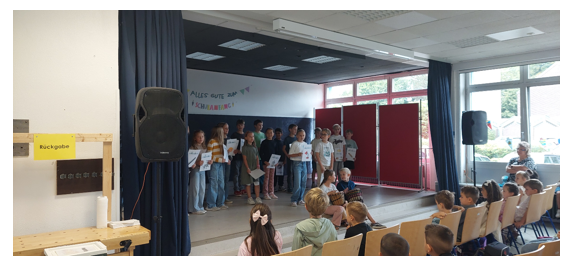 Am 28.08.25 hat die Einschulung der neuen I-Dötzchen stattgefunden. Die Jahrgänge 4 haben ein tolles Programm erarbeitet. Es wurde die Geschichte vom Löwen, der nicht Schreiben konnte, erzählt. Der Anlaut-Rap wurde vorgetragen. Desweiteren wurde der Zahlensong vorgetragen. Es war ein schöner und aufregender Tag. Wir danken den Klassen 2a und 2b für die Ausgestaltung des Elterncafés und die Unterstützung und Spenden.